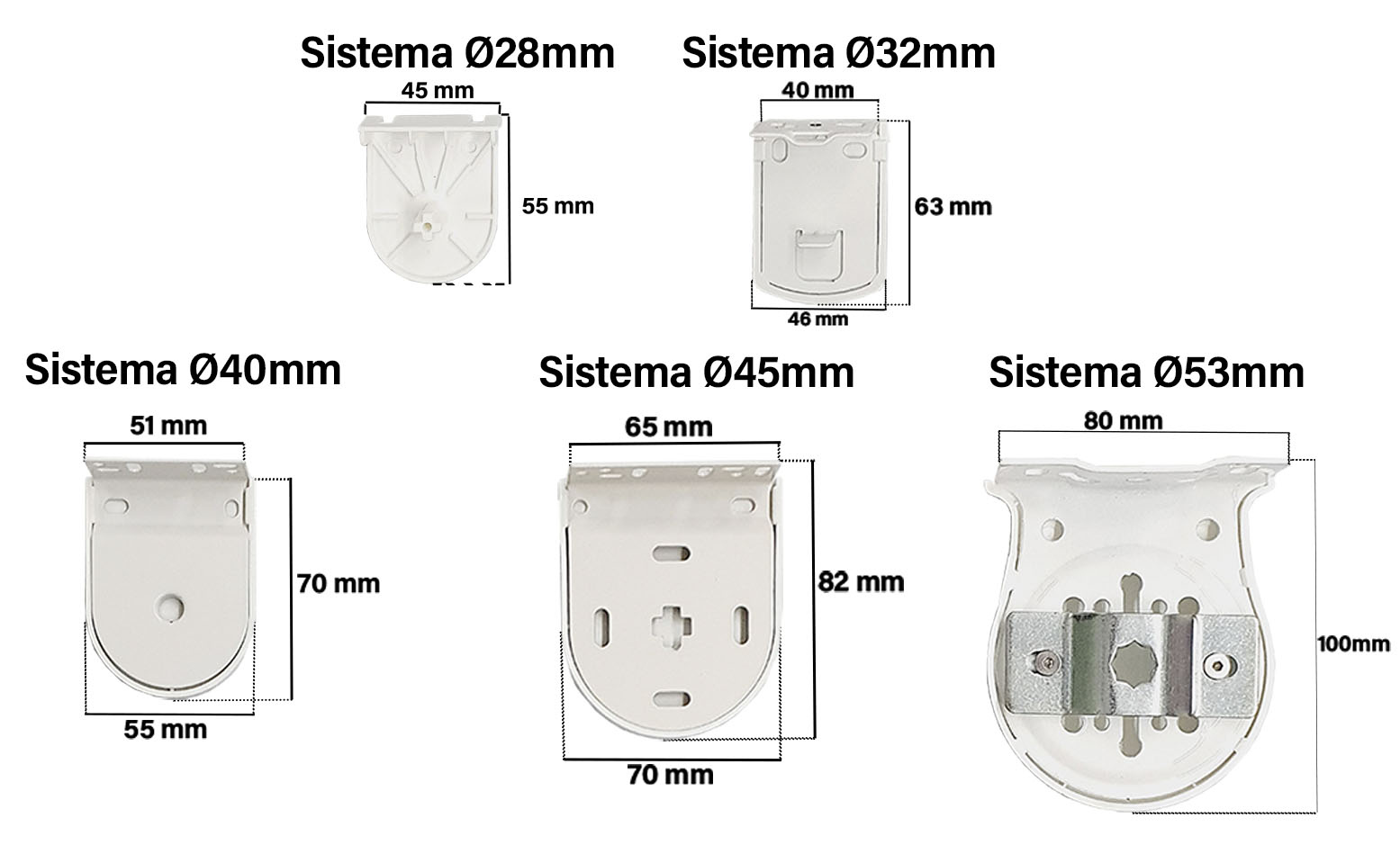 Kit completo de sistema de accionamiento de estores enrollables. Compatibles con tubos de 40mm y 45mm. Disponibles en 4 colores a elegir.